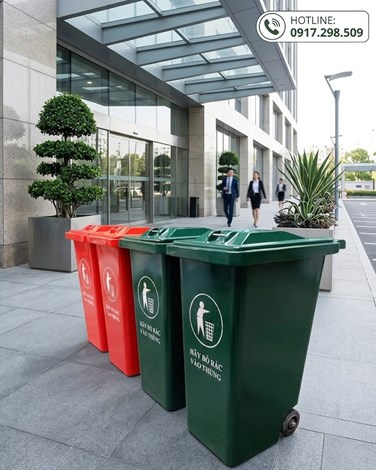 Với dung tích lớn và độ bền vượt trội, thùng rác công cộng 240 lít là lựa chọn không thể thay thế tại: