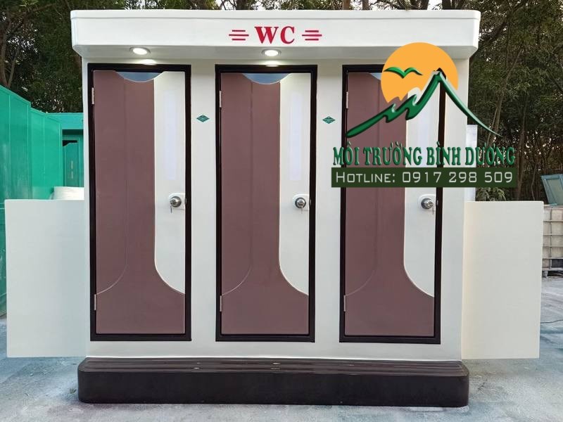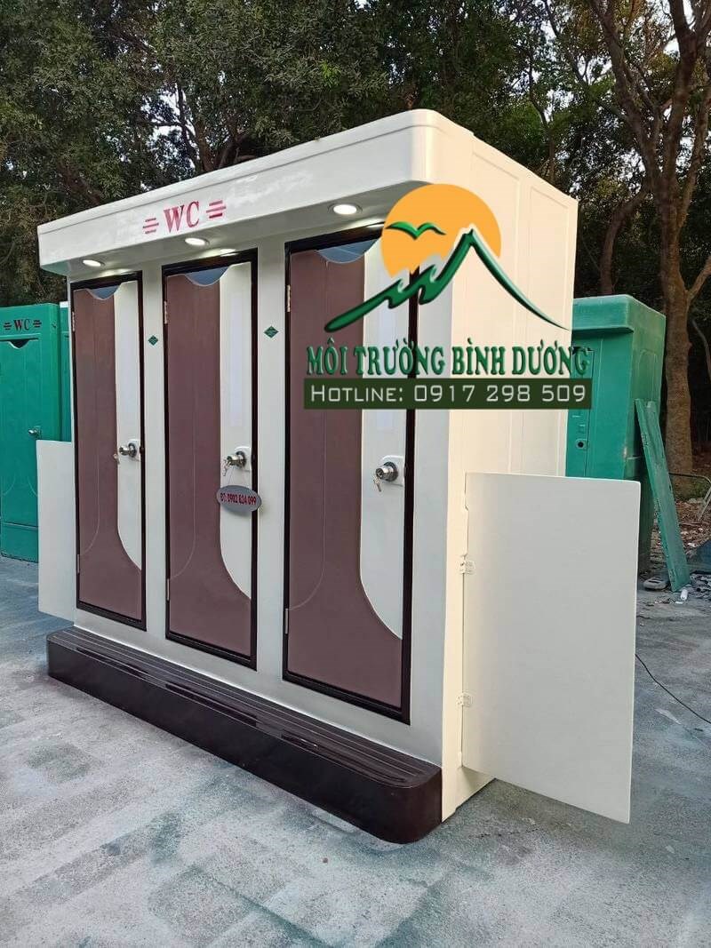 - Nhà vệ sinh di động 3 buồng được sản xuất một khối liền mạch. Có 3 buồng (nhà) vệ sinh riêng biệt, hoàn chỉnh...Tiện ích sử dụng cho mỗi buồng đầy đủ. Sản phẩm toilet di động này được làm bằng vật liệu Composite chứa cốt sợi thủy tinh cao cấp. Nhà vệ sinh được sản xuất theo công nghệ đúc Composite nguyên khối, đảm bảo độ liên kết chắc chắn, không mấu nối, không khe hở, thẩm mỹ cao. Nâng cẩu thoải mái mà không lo ảnh hưởng đến nhà vệ sinh di động.