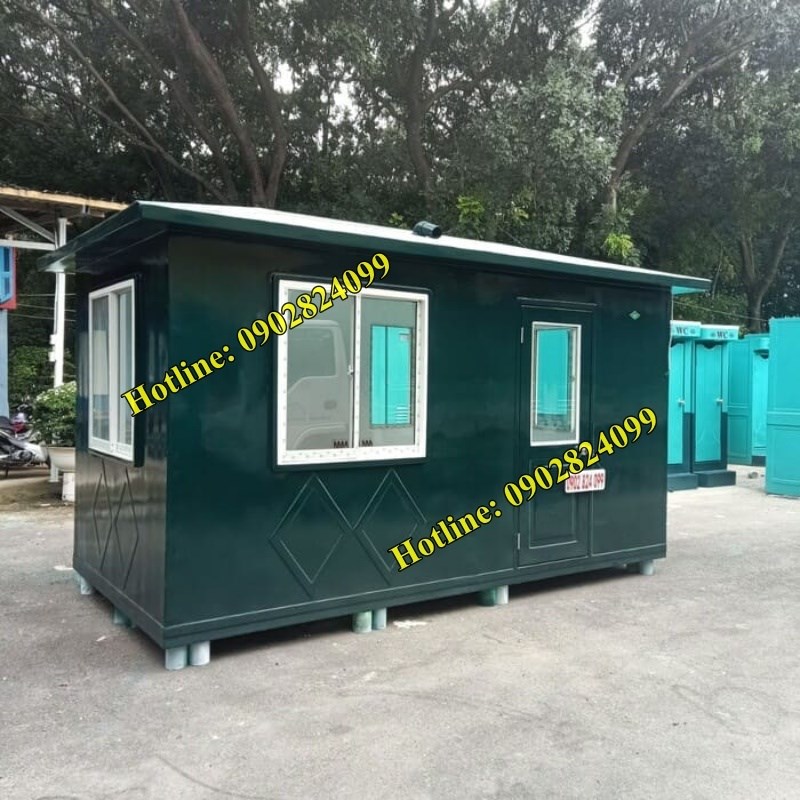 Miêu tả: màu xanh dương. Đây là Mẫu Chòi gác bảo vệ kích thước tương đối lớn, trang bị 5 cửa sổ nên có thể sử dụng từ 4 -5 nhân viên trực bảo vệ phù hợp. Nội thất trang bị đầy đủ.