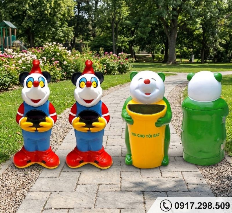 Tại các khu vực công cộng có đông trẻ em như trường mẫu giáo hay khu vui chơi, việc giáo dục các bé bỏ rác đúng nơi quy định là vô cùng quan trọng. Thay vì sử dụng những chiếc thùng rác nhựa công nghiệp khô khan, sự xuất hiện của các mẫu thùng rác mang hình dáng động vật ngộ nghĩnh chính là giải pháp giáo dục trực quan sinh động nhất, khuyến khích trẻ tự giác hình thành thói quen tốt ngay từ nhỏ.